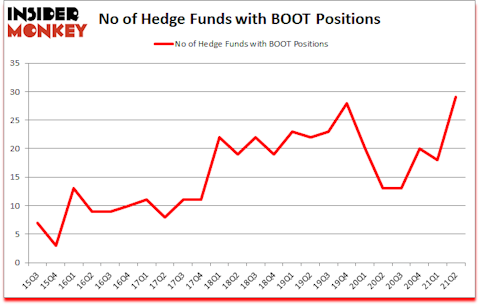 At the end of June, a total of 29 of the hedge funds tracked by Insider Monkey held long positions in this stock, a change of 61% from one quarter earlier. Below, you can check out the change in hedge fund sentiment towards BOOT over the last 24 quarters. So, let’s examine which hedge funds were among the top holders of the stock and which hedge funds were making big moves.