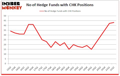 Chesapeake Energy Corporation (NASDAQ:CHK) was in 43 hedge funds’ portfolios at the end of June. The all time high for this statistic was previously 42. This means the bullish number of hedge fund positions in this stock currently sits at its all time high. CHK shareholders have witnessed an increase in hedge fund sentiment recently. There were 42 hedge funds in our database with CHK holdings at the end of March. Our calculations also showed that CHK isn’t among the 30 most popular stocks among hedge funds (click for Q2 rankings).