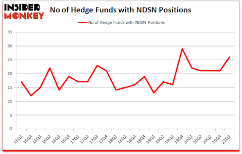 At first quarter’s end, a total of 26 of the hedge funds tracked by Insider Monkey were long this stock, a change of 24% from the previous quarter. By comparison, 22 hedge funds held shares or bullish call options in NDSN a year ago. With hedge funds’ sentiment swirling, there exists a few key hedge fund managers who were boosting their holdings considerably (or already accumulated large positions).