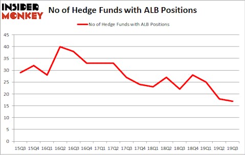 At the end of the third quarter, a total of 17 of the hedge funds tracked by Insider Monkey were bullish on this stock, a change of -6% from the previous quarter. Below, you can check out the change in hedge fund sentiment towards ALB over the last 17 quarters. With the smart money’s sentiment swirling, there exists a few noteworthy hedge fund managers who were upping their holdings substantially (or already accumulated large positions).