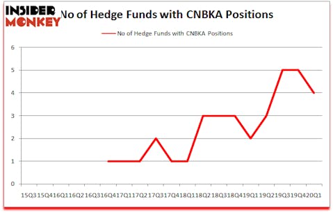 At Q1’s end, a total of 4 of the hedge funds tracked by Insider Monkey were long this stock, a change of -20% from one quarter earlier. The graph below displays the number of hedge funds with bullish position in CNBKA over the last 18 quarters. With hedge funds’ capital changing hands, there exists a select group of key hedge fund managers who were upping their stakes substantially (or already accumulated large positions).