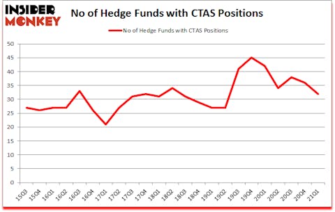 At the end of the first quarter, a total of 32 of the hedge funds tracked by Insider Monkey were bullish on this stock, a change of -11% from one quarter earlier. The graph below displays the number of hedge funds with bullish position in CTAS over the last 23 quarters. So, let’s find out which hedge funds were among the top holders of the stock and which hedge funds were making big moves.