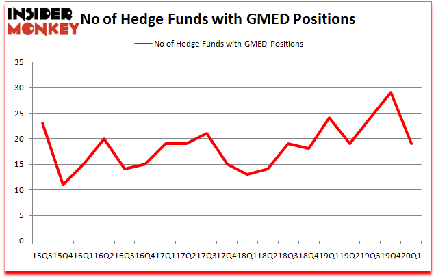 Globus Medical Inc (NYSE:GMED) investors should pay attention to a decrease in activity from the world’s largest hedge funds in recent months. GMED was in 19 hedge funds’ portfolios at the end of the first quarter of 2020. There were 29 hedge funds in our database with GMED positions at the end of the previous quarter. Our calculations also showed that GMED isn’t among the 30 most popular stocks among hedge funds (click for Q1 rankings and see the video for a quick look at the top 5 stocks).