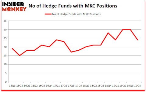 McCormick & Company, Incorporated (NYSE:MKC) was in 24 hedge funds’ portfolios at the end of the fourth quarter of 2019. MKC shareholders have witnessed a decrease in enthusiasm from smart money in recent months. There were 30 hedge funds in our database with MKC holdings at the end of the previous quarter. Our calculations also showed that MKC isn’t among the 30 most popular stocks among hedge funds (click for Q4 rankings and see the video below for Q3 rankings).
