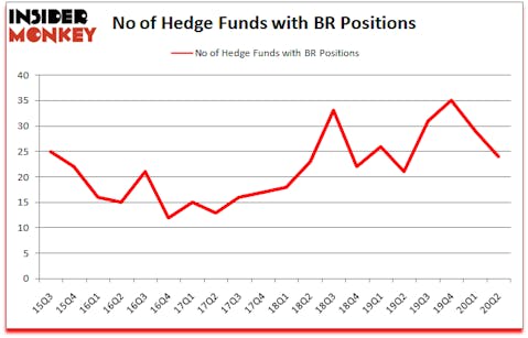 At Q2’s end, a total of 24 of the hedge funds tracked by Insider Monkey were bullish on this stock, a change of -17% from the first quarter of 2020. The graph below displays the number of hedge funds with bullish position in BR over the last 20 quarters. So, let’s find out which hedge funds were among the top holders of the stock and which hedge funds were making big moves.
