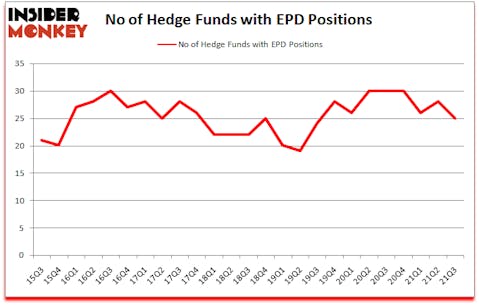 Enterprise Products Partners L.P. (NYSE:EPD) was in 25 hedge funds’ portfolios at the end of September. The all time high for this statistic is 30. EPD investors should pay attention to a decrease in hedge fund interest in recent months. There were 28 hedge funds in our database with EPD positions at the end of the second quarter. Our calculations also showed that EPD isn’t among the 30 most popular stocks among hedge funds (click for Q3 rankings).