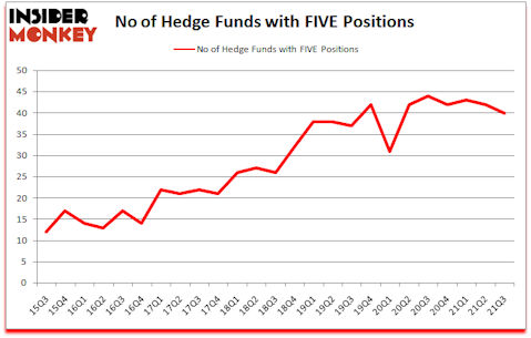 Five Below Inc (NASDAQ:FIVE) has experienced a decrease in hedge fund sentiment of late. Five Below Inc (NASDAQ:FIVE) was in 40 hedge funds’ portfolios at the end of the third quarter of 2021. The all time high for this statistic is 44. There were 42 hedge funds in our database with FIVE holdings at the end of June. Our calculations also showed that FIVE isn’t among the 30 most popular stocks among hedge funds (click for Q3 rankings).