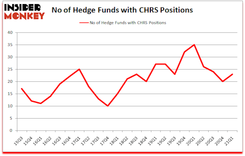At the end of March, a total of 23 of the hedge funds tracked by Insider Monkey held long positions in this stock, a change of 15% from one quarter earlier. The graph below displays the number of hedge funds with bullish position in CHRS over the last 23 quarters. With the smart money’s sentiment swirling, there exists a select group of noteworthy hedge fund managers who were increasing their holdings meaningfully (or already accumulated large positions).