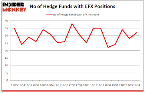 At the end of the fourth quarter, a total of 32 of the hedge funds tracked by Insider Monkey held long positions in this stock, a change of 14% from one quarter earlier. The graph below displays the number of hedge funds with bullish position in EFX over the last 18 quarters. So, let’s examine which hedge funds were among the top holders of the stock and which hedge funds were making big moves.