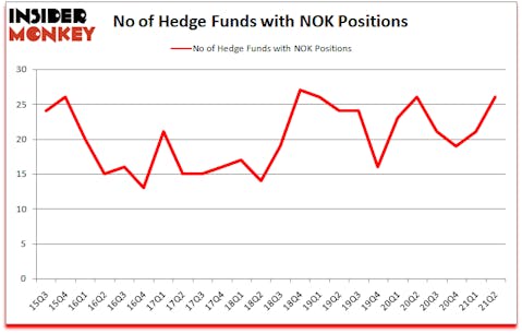 Nokia Corporation (NYSE:NOK) was in 26 hedge funds’ portfolios at the end of the second quarter of 2021. The all time high for this statistic is 27. NOK investors should pay attention to an increase in hedge fund sentiment in recent months. There were 21 hedge funds in our database with NOK positions at the end of the first quarter. Our calculations also showed that NOK isn’t among the 30 most popular stocks among hedge funds (click for Q2 rankings).