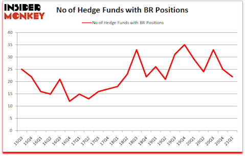Broadridge Financial Solutions, Inc. (NYSE:BR) has seen a decrease in hedge fund interest of late. Broadridge Financial Solutions, Inc. (NYSE:BR) was in 22 hedge funds’ portfolios at the end of the first quarter of 2021. The all time high for this statistic is 35. Our calculations also showed that BR isn’t among the 30 most popular stocks among hedge funds (click for Q1 rankings).