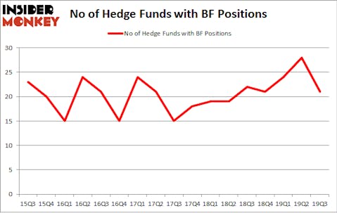 At Q3’s end, a total of 21 of the hedge funds tracked by Insider Monkey were long this stock, a change of -25% from the second quarter of 2019. The graph below displays the number of hedge funds with bullish position in BF over the last 17 quarters. So, let’s examine which hedge funds were among the top holders of the stock and which hedge funds were making big moves.