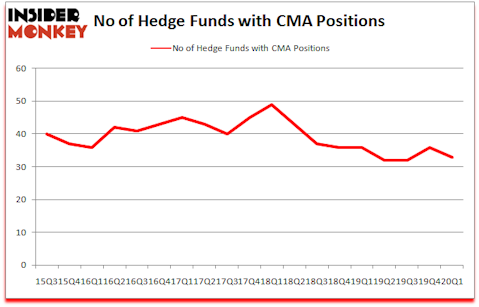 Heading into the second quarter of 2020, a total of 33 of the hedge funds tracked by Insider Monkey held long positions in this stock, a change of -8% from the fourth quarter of 2019. Below, you can check out the change in hedge fund sentiment towards CMA over the last 18 quarters. So, let’s see which hedge funds were among the top holders of the stock and which hedge funds were making big moves.