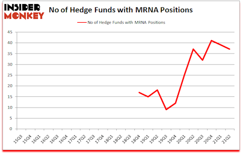 Moderna, Inc. (NASDAQ:MRNA) has experienced a decrease in hedge fund interest lately. Moderna, Inc. (NASDAQ:MRNA) was in 37 hedge funds’ portfolios at the end of the second quarter of 2021. The all time high for this statistic is 41. Our calculations also showed that MRNA isn’t among the 30 most popular stocks among hedge funds (click for Q2 rankings).