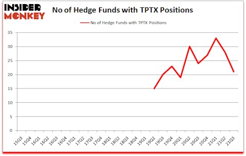At third quarter’s end, a total of 21 of the hedge funds tracked by Insider Monkey were bullish on this stock, a change of -25% from the previous quarter. Below, you can check out the change in hedge fund sentiment towards TPTX over the last 25 quarters. With hedgies’ capital changing hands, there exists an “upper tier” of notable hedge fund managers who were increasing their holdings substantially (or already accumulated large positions).