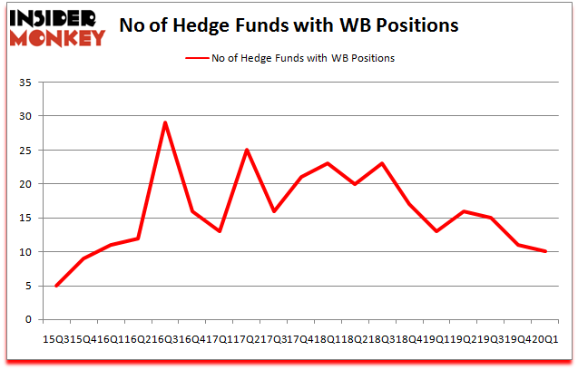 At Q1’s end, a total of 10 of the hedge funds tracked by Insider Monkey were long this stock, a change of -9% from one quarter earlier. The graph below displays the number of hedge funds with bullish position in WB over the last 18 quarters. With hedge funds’ sentiment swirling, there exists a select group of key hedge fund managers who were upping their stakes substantially (or already accumulated large positions).