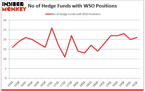 At the end of June, a total of 21 of the hedge funds tracked by Insider Monkey held long positions in this stock, a change of 5% from the previous quarter. The graph below displays the number of hedge funds with bullish position in WSO over the last 20 quarters. With the smart money’s sentiment swirling, there exists a few notable hedge fund managers who were increasing their holdings meaningfully (or already accumulated large positions).