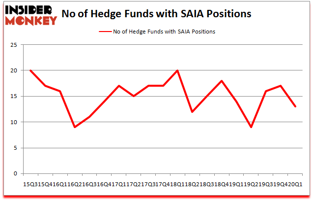Saia Inc (NASDAQ:SAIA) was in 13 hedge funds’ portfolios at the end of the first quarter of 2020. SAIA investors should be aware of a decrease in enthusiasm from smart money of late. There were 17 hedge funds in our database with SAIA holdings at the end of the previous quarter. Our calculations also showed that SAIA isn’t among the 30 most popular stocks among hedge funds (click for Q1 rankings and see the video for a quick look at the top 5 stocks).