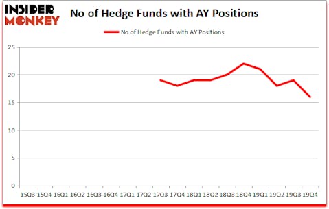 At Q4’s end, a total of 16 of the hedge funds tracked by Insider Monkey were bullish on this stock, a change of -16% from the previous quarter. By comparison, 22 hedge funds held shares or bullish call options in AY a year ago. With the smart money’s capital changing hands, there exists a select group of key hedge fund managers who were increasing their holdings substantially (or already accumulated large positions).