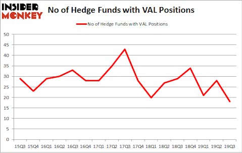 Heading into the fourth quarter of 2019, a total of 18 of the hedge funds tracked by Insider Monkey held long positions in this stock, a change of -36% from the second quarter of 2019. By comparison, 29 hedge funds held shares or bullish call options in VAL a year ago. With hedge funds’ positions undergoing their usual ebb and flow, there exists an “upper tier” of notable hedge fund managers who were increasing their holdings considerably (or already accumulated large positions).