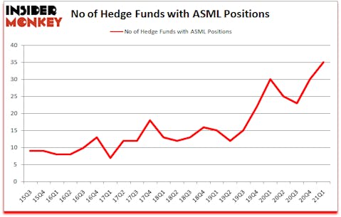 ASML Holding N.V. (NASDAQ:ASML) was in 35 hedge funds’ portfolios at the end of March. The all time high for this statistic was previously 30. This means the bullish number of hedge fund positions in this stock currently sits at its all time high. ASML has seen an increase in enthusiasm from smart money lately. There were 30 hedge funds in our database with ASML positions at the end of the fourth quarter. Our calculations also showed that ASML isn’t among the 30 most popular stocks among hedge funds (click for Q1 rankings).
