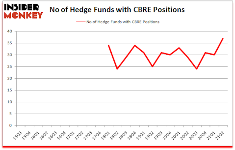 CBRE Group, Inc. (NYSE:CBRE) was in 37 hedge funds’ portfolios at the end of the second quarter of 2021. The all time high for this statistic was previously 34. This means the bullish number of hedge fund positions in this stock currently sits at its all time high. CBRE has experienced an increase in activity from the world’s largest hedge funds of late. There were 30 hedge funds in our database with CBRE holdings at the end of March. Our calculations also showed that CBRE isn’t among the 30 most popular stocks among hedge funds (click for Q2 rankings).