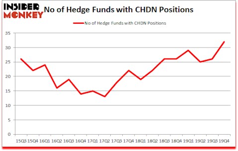 At Q4’s end, a total of 32 of the hedge funds tracked by Insider Monkey were bullish on this stock, a change of 23% from one quarter earlier. On the other hand, there were a total of 26 hedge funds with a bullish position in CHDN a year ago. With the smart money’s capital changing hands, there exists an “upper tier” of noteworthy hedge fund managers who were boosting their holdings considerably (or already accumulated large positions).