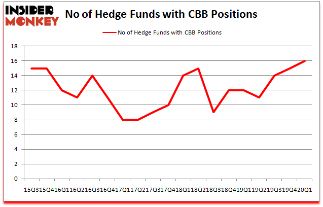 Heading into the second quarter of 2020, a total of 16 of the hedge funds tracked by Insider Monkey held long positions in this stock, a change of 7% from one quarter earlier. Below, you can check out the change in hedge fund sentiment towards CBB over the last 18 quarters. With the smart money’s sentiment swirling, there exists an “upper tier” of key hedge fund managers who were adding to their holdings meaningfully (or already accumulated large positions).