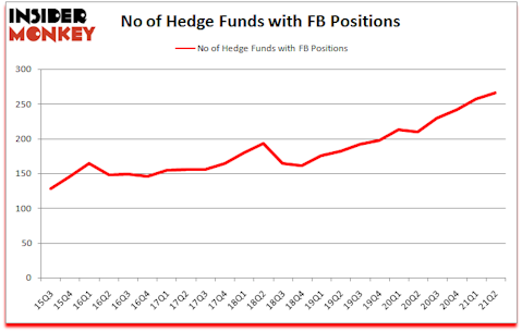 Is Facebook Inc (NASDAQ:FB) ready to rally soon? The smart money was taking a bullish view. The number of long hedge fund bets inched up by 9 in recent months. Facebook Inc (NASDAQ:FB) was in 266 hedge funds’ portfolios at the end of the second quarter of 2021. The all time high for this statistic is 257. This means the bullish number of hedge fund positions in this stock currently sits at its all time high. Our calculations also showed that FB ranked #2 among the 30 most popular stocks among hedge funds (click for Q2 rankings). There were 257 hedge funds in our database with FB holdings at the end of March.