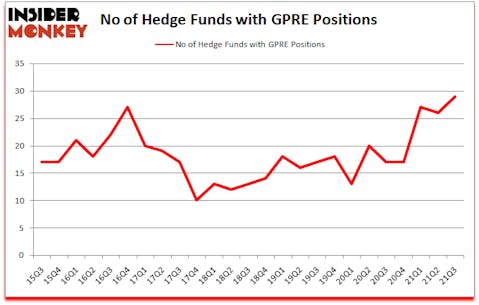 At Q3’s end, a total of 29 of the hedge funds tracked by Insider Monkey were long this stock, a change of 12% from one quarter earlier. The graph below displays the number of hedge funds with bullish position in GPRE over the last 25 quarters. With the smart money’s sentiment swirling, there exists a select group of noteworthy hedge fund managers who were boosting their stakes significantly (or already accumulated large positions).