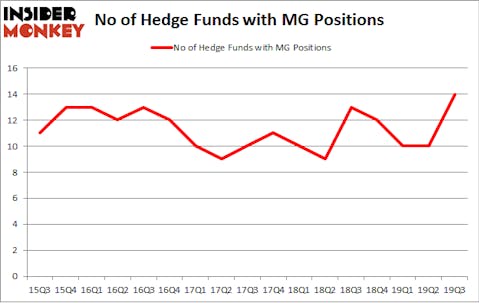 At Q3’s end, a total of 14 of the hedge funds tracked by Insider Monkey were bullish on this stock, a change of 40% from the previous quarter. Below, you can check out the change in hedge fund sentiment towards MG over the last 17 quarters. So, let’s see which hedge funds were among the top holders of the stock and which hedge funds were making big moves.