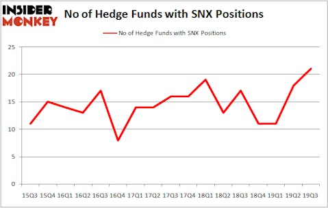 Heading into the fourth quarter of 2019, a total of 21 of the hedge funds tracked by Insider Monkey were bullish on this stock, a change of 17% from the previous quarter. Below, you can check out the change in hedge fund sentiment towards SNX over the last 17 quarters. With hedge funds’ positions undergoing their usual ebb and flow, there exists an “upper tier” of noteworthy hedge fund managers who were upping their holdings meaningfully (or already accumulated large positions).