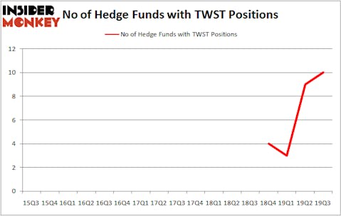 Heading into the fourth quarter of 2019, a total of 10 of the hedge funds tracked by Insider Monkey held long positions in this stock, a change of 11% from the second quarter of 2019. By comparison, 0 hedge funds held shares or bullish call options in TWST a year ago. With the smart money’s positions undergoing their usual ebb and flow, there exists a select group of notable hedge fund managers who were upping their holdings considerably (or already accumulated large positions).