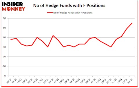 Is Ford Motor Company (NYSE:F) the right pick for your portfolio? Investors who are in the know were in an optimistic mood. The number of long hedge fund bets inched up by 6 recently. Ford Motor Company (NYSE:F) was in 55 hedge funds’ portfolios at the end of the second quarter of 2021. The all time high for this statistic was previously 49. This means the bullish number of hedge fund positions in this stock currently sits at its all time high. Our calculations also showed that F isn’t among the 30 most popular stocks among hedge funds (click for Q2 rankings). There were 49 hedge funds in our database with F positions at the end of the first quarter.