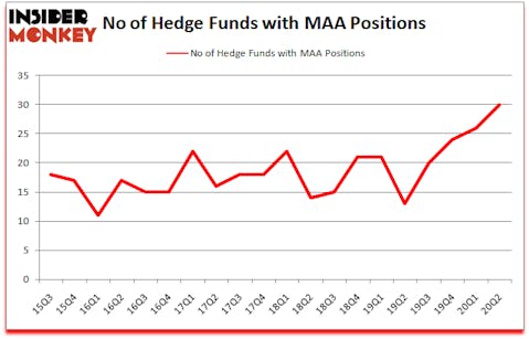 Is Mid America Apartment Communities Inc (NYSE:MAA) a worthy investment now? The smart money was taking a bullish view. The number of bullish hedge fund positions increased by 4 recently. Mid America Apartment Communities Inc (NYSE:MAA) was in 30 hedge funds’ portfolios at the end of the second quarter of 2020. The all time high for this statistics is 26. This means the bullish number of hedge fund positions in this stock currently sits at its all time high. Our calculations also showed that MAA isn’t among the 30 most popular stocks among hedge funds (click for Q2 rankings and see the video for a quick look at the top 5 stocks).