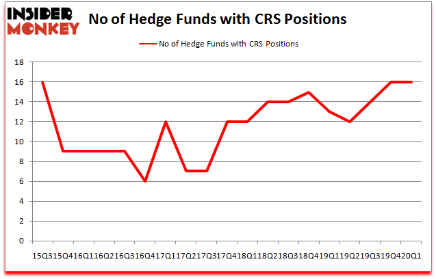 At the end of the first quarter, a total of 16 of the hedge funds tracked by Insider Monkey held long positions in this stock, a change of 0% from the previous quarter. By comparison, 13 hedge funds held shares or bullish call options in CRS a year ago. So, let’s check out which hedge funds were among the top holders of the stock and which hedge funds were making big moves.