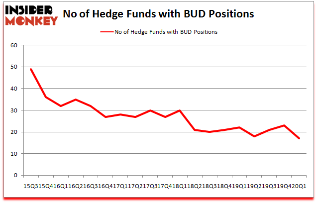 Anheuser-Busch InBev SA/NV (NYSE:BUD) was in 17 hedge funds’ portfolios at the end of March. BUD investors should pay attention to a decrease in enthusiasm from smart money of late. There were 23 hedge funds in our database with BUD holdings at the end of the previous quarter. Our calculations also showed that BUD isn’t among the 30 most popular stocks among hedge funds (click for Q1 rankings and see the video for a quick look at the top 5 stocks).