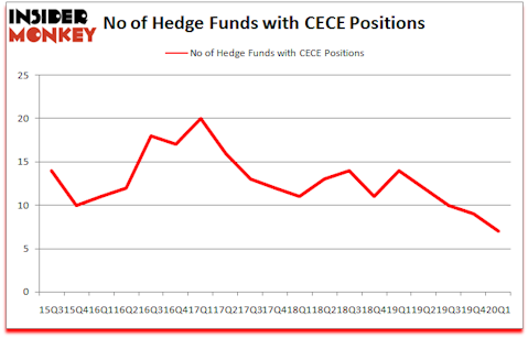 At Q1’s end, a total of 7 of the hedge funds tracked by Insider Monkey were bullish on this stock, a change of -22% from one quarter earlier. The graph below displays the number of hedge funds with bullish position in CECE over the last 18 quarters. With hedge funds’ capital changing hands, there exists a select group of key hedge fund managers who were adding to their holdings meaningfully (or already accumulated large positions).