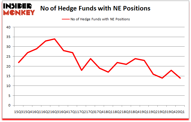 Heading into the second quarter of 2020, a total of 14 of the hedge funds tracked by Insider Monkey held long positions in this stock, a change of -22% from the previous quarter. Below, you can check out the change in hedge fund sentiment towards NE over the last 18 quarters. With hedge funds’ sentiment swirling, there exists an “upper tier” of noteworthy hedge fund managers who were increasing their stakes substantially (or already accumulated large positions).