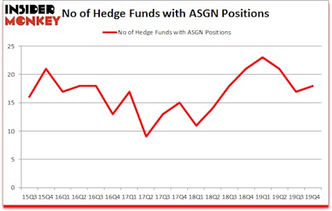 ASGN Incorporated (NYSE:ASGN) has experienced an increase in hedge fund interest lately. ASGN was in 18 hedge funds’ portfolios at the end of the fourth quarter of 2019. There were 17 hedge funds in our database with ASGN holdings at the end of the previous quarter. Our calculations also showed that ASGN isn’t among the 30 most popular stocks among hedge funds (click for Q4 rankings and see the video at the end of this article for Q3 rankings).