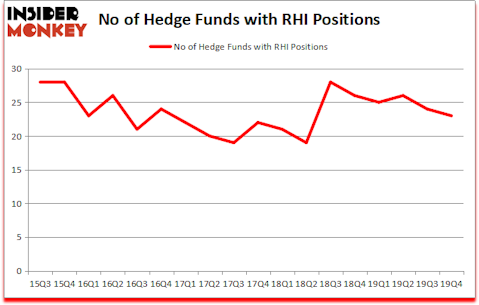 Robert Half International Inc. (NYSE:RHI) shareholders have witnessed a decrease in hedge fund sentiment of late. RHI was in 23 hedge funds’ portfolios at the end of the fourth quarter of 2019. There were 24 hedge funds in our database with RHI holdings at the end of the previous quarter. Our calculations also showed that RHI isn’t among the 30 most popular stocks among hedge funds (click for Q4 rankings and see the video at the end of this article for Q3 rankings).