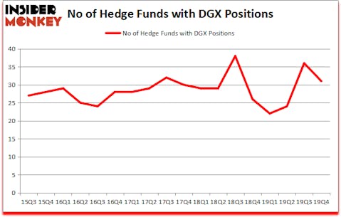 Quest Diagnostics Incorporated (NYSE:DGX) was in 31 hedge funds’ portfolios at the end of the fourth quarter of 2019. DGX has experienced a decrease in activity from the world’s largest hedge funds of late. There were 36 hedge funds in our database with DGX positions at the end of the previous quarter. Our calculations also showed that DGX isn’t among the 30 most popular stocks among hedge funds (click for Q4 rankings and see the video below for Q3 rankings).
