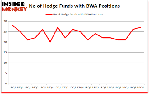 BorgWarner Inc. (NYSE:BWA) investors should be aware of an increase in enthusiasm from smart money lately. BWA was in 27 hedge funds’ portfolios at the end of December. There were 26 hedge funds in our database with BWA holdings at the end of the previous quarter. Our calculations also showed that BWA isn’t among the 30 most popular stocks among hedge funds (click for Q4 rankings and see the video at the end of this article for Q3 rankings).