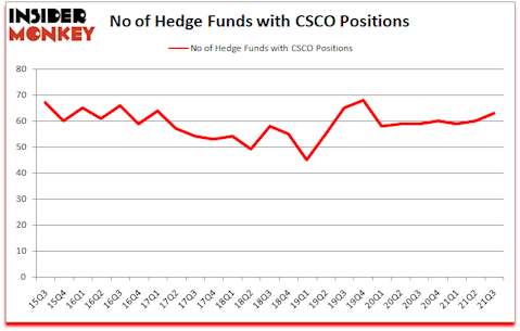 Cisco Systems, Inc. (NASDAQ:CSCO) investors should be aware of an increase in hedge fund interest in recent months. Cisco Systems, Inc. (NASDAQ:CSCO) was in 63 hedge funds’ portfolios at the end of September. The all time high for this statistic is 68. Our calculations also showed that CSCO isn’t among the 30 most popular stocks among hedge funds (click for Q3 rankings).