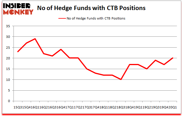 Heading into the second quarter of 2020, a total of 20 of the hedge funds tracked by Insider Monkey were bullish on this stock, a change of 18% from the previous quarter. By comparison, 17 hedge funds held shares or bullish call options in CTB a year ago. With hedge funds’ sentiment swirling, there exists a select group of key hedge fund managers who were upping their holdings considerably (or already accumulated large positions).