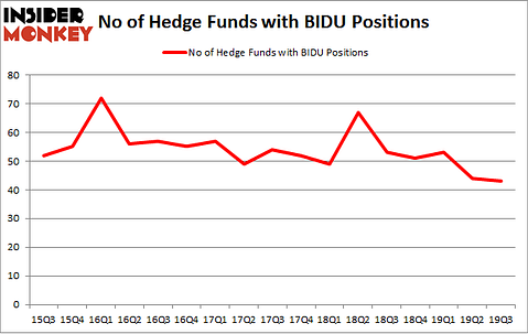 Heading into the fourth quarter of 2019, a total of 43 of the hedge funds tracked by Insider Monkey were bullish on this stock, a change of -2% from one quarter earlier. The graph below displays the number of hedge funds with bullish position in BIDU over the last 17 quarters. With hedgies’ capital changing hands, there exists a few key hedge fund managers who were adding to their stakes significantly (or already accumulated large positions).