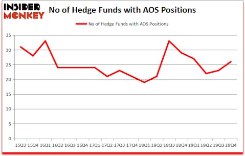 Is A. O. Smith Corporation (NYSE:AOS) going to take off soon? The smart money is getting more optimistic. The number of bullish hedge fund positions rose by 3 recently. Our calculations also showed that AOS isn’t among the 30 most popular stocks among hedge funds (click for Q4 rankings and see the video at the end of this article for Q3 rankings). AOS was in 26 hedge funds’ portfolios at the end of the fourth quarter of 2019. There were 23 hedge funds in our database with AOS positions at the end of the previous quarter.