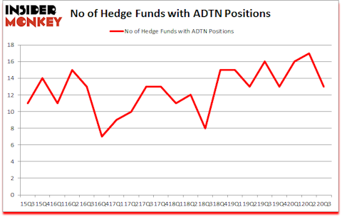 At third quarter’s end, a total of 13 of the hedge funds tracked by Insider Monkey were long this stock, a change of -24% from the previous quarter. On the other hand, there were a total of 16 hedge funds with a bullish position in ADTN a year ago. So, let’s examine which hedge funds were among the top holders of the stock and which hedge funds were making big moves.