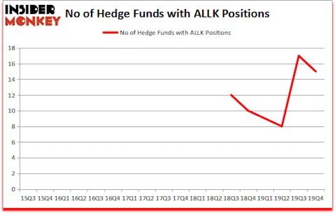 Heading into the first quarter of 2020, a total of 15 of the hedge funds tracked by Insider Monkey were bullish on this stock, a change of -12% from the third quarter of 2019. Below, you can check out the change in hedge fund sentiment towards ALLK over the last 18 quarters. With the smart money’s positions undergoing their usual ebb and flow, there exists a few key hedge fund managers who were boosting their holdings meaningfully (or already accumulated large positions).