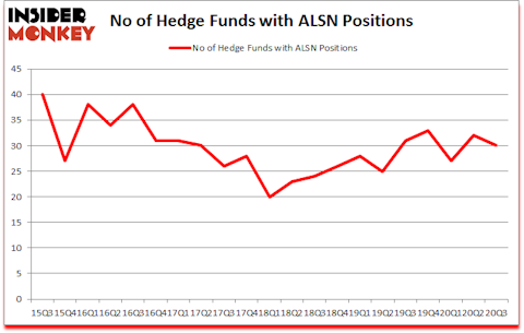 Is ALSN a good stock to buy? Allison Transmission Holdings Inc (NYSE:ALSN) was in 30 hedge funds’ portfolios at the end of the third quarter of 2020. The all time high for this statistic is 40. ALSN has seen a decrease in activity from the world’s largest hedge funds lately. There were 32 hedge funds in our database with ALSN holdings at the end of June. Our calculations also showed that ALSN isn’t among the 30 most popular stocks among hedge funds (click for Q3 rankings and see the video for a quick look at the top 5 stocks).